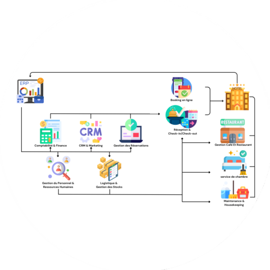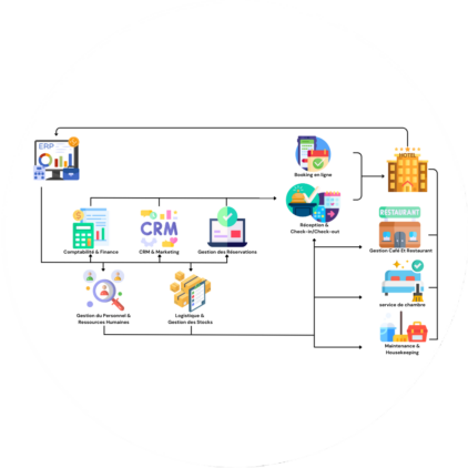 Notre solution ERP est spécialement conçue pour les hôtels, facilitant la gestion des réservations, l’optimisation des opérations et l’amélioration de l’expérience client.