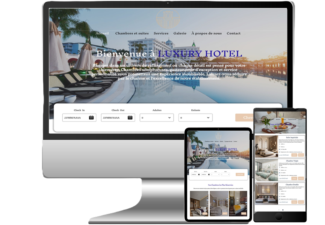 Nous créons des sites web pour hôtels avec un système de réservation en ligne intégré, permettant à vos clients de réserver et de payer en toute sécurité, directement sur votre site. Offrez-leur une expérience rapide, fluide et moderne.